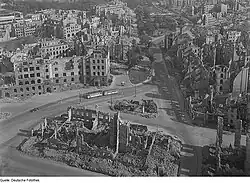 ![]() Georgplatz vom Turm des Neuen Rathauses, 2010; links das Atrium I (Robotron-Gelände, 2015/16 abgerissen), ganz rechts das Studentenwohnheim St. Petersburger Str. 21. | |