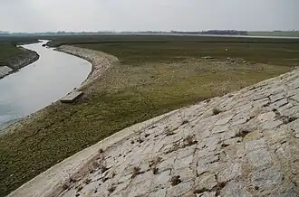 Das leere Wasserrückhaltebecken bei Straußfurt