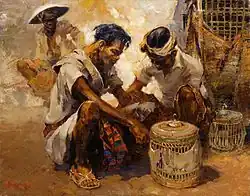 “In his works he has always attempted to represent the light, colour and the simple joy of life that impregnates the native scenes of the East. As can be seen from the works reproduced, he has a bold, vigorous style, applying his pigments with quick strokes of the palette knife.”