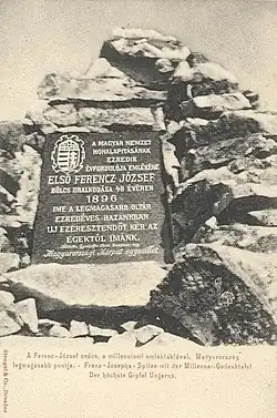 Nach der Umbenennung in Franz-Joseph-Spitze im Jahr 1896 wurden zwei Gedenktafeln am Gipfel angebracht. Die größere aus Diorit (80 mal 60 cm, 75 kg schwer) beinhaltete das vergoldete Wappen der Doppelmonarchie sowie einen Jubiläumstext auf Ungarisch, auf der kleineren aus Marmor wurde der neue Bergname eingraviert. Die kleinere Gedenktafel verschwand bereits kurz nach der Einsetzung, die größere wurde im Laufe der Jahre durch feindlich gesinnte Bergsteiger stückweise zerstört. Im Auftrag der Budapester Sektion des Ungarischen Touristenvereins (ungarisch Magyar Turista Egyesület, MTE) wurde 1909 die Planung einer Seilbahn von Weszterheim (heute Tatranská Polianka) zum Gipfel der Franz-Josef-Spitze aufgenommen. Neben der Bergstation sah das von Samuel Gabrínyi ausgearbeitete Projekt eine meteorologische Station und eine Schutzhütte am Gipfel. Das Gebäudeensemble sollte den Namen Budapesti ház (deutsch Budapest-Haus) tragen. Ein ähnliches Projekt wurde erst ab den späten 1930er Jahren auf dem Lomnický štít weiter nach Osten realisiert.[13]