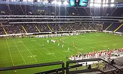 Der German Bowl XLI, das Endspiel der German Football League (GFL) in der Saison 2019, fand am 12. Oktober 2019 in der Frankfurter Commerzbank-Arena statt.[3] Der Umzug des German Bowls aus dem Berliner Friedrich-Ludwig-Jahn-Sportpark war notwendig, da in diesem umfangreiche Umbaumaßnahmen erfolgen.
