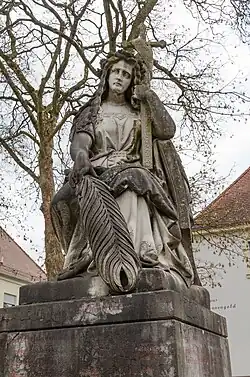 Als im November 1891 die Anfrage der Regierung, ob die Stadt für die Germania unterhaltspflichtig sei, von Badkommisär Freiherr von Braun verneint wurde, wies die Regierung das Badkommissariat an, das Umfeld der Skulptur zu verschönern.[8] Diese Anweisung wurde von Hofgärtner Singer durch Pflanzung eines Buchsbaums in der Form eines Eisernen Kreuzes umgesetzt.[8]