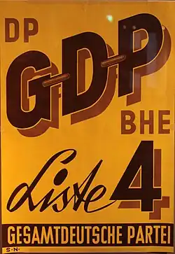 Die Gesamtdeutsche Partei (Kurzbezeichnung: GDP) war eine von 1961 bis 1977 bestehende politische Partei in der Bundesrepublik Deutschland. Die Übereinstimmung ihres Parteikürzels mit der GdP (Gewerkschaft der Polizei) führte 1966 zur Umbenennung in Gesamtdeutsche Partei Deutschlands (GPD) bzw. GPD/BHE.[1]
