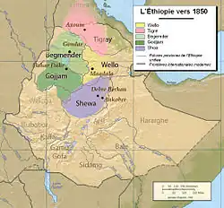 Im Becken des Gibe führten landwirtschaftliche Entwicklungen zur Herausbildung von Staaten der Oromo und der Sidama. Eigene Staaten bildeten auch die Gonga im Kaffa-Hochland westlich des Omo. Im Norden Shewas ging aus einem jüngeren Zweig der Solomonischen Dynastie ein weiteres Königreich hervor, das durch Handel mit den Gibe-Staaten einen beachtlichen Aufschwung erlebte. Ihr König Sahle Selassie (1813–1847) und seine Nachfolger dehnten ihren Machtbereich nach Süden aus und herrschten um 1840 über einen Großteil der Shewa am Awash bis südlich zu den Gurage-Bergen.[3]