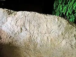 Kunstwerke aus dem Paläolithikum, wie sie in Frankreich und Spanien so häufig sind, sind in Italien äußerst selten. Einige der ältesten fanden sich in der Grotta del Romito in Kalabrien.[18] Dort fand sich in Form einer Steinritzung beispielsweise die Darstellung eines Auerochsen. Zudem fanden sich dort Grabstellen vor der Höhle.[19]