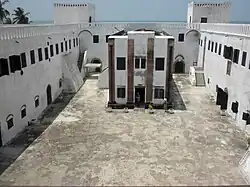 Die Portugiesen verboten deshalb (ebenso wie später die Niederländer) die Versklavung von Einheimischen im Umland von Elmina. Ein königlicher Erlass von 1615 nennt dafür einen Umkreis von zehn Leguas (etwa 50 Kilometer) um die Stadt. Elmina war nie eine Quelle von Sklaven, ihre gesamte Herrschaft hindurch importierten die Portugiesen sogar Sklaven dorthin und bezahlten mit tausenden Menschen von der sogenannten Sklavenküste das Gold der Aschanti.[15] Die spätere Bedeutung der Stadt für den Sklavenhandel beruhte auf ihrer Funktion als Durchgangsstation für verschleppte Menschen ab dem 17. Jahrhundert.