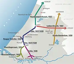 Im Goldenen Zeitalter war Leiden nach Amsterdam die größte Stadt in Holland. Das Bevölkerungswachstum machte die Anlage neuer Grachten und Singel notwendig. Das heutige Zentrum Leidens, erkennbar an dem Verlauf der Singel auf den Stadtplänen von 1614 und 1649 (s. o.), wurde 1659 vollendet. Auch wurden Kanäle mit Treidelpfaden nach Delft (1637, ein Jahr später verlängert bis Den Haag), Haarlem (1657) und Utrecht (1564) gegraben.