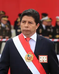 Bei den Präsidentschaftswahlen im April 2021 gewann überraschend Pedro Castillo von Peru Libre (PL), einer 2016 gegründeten Partei mit marxistisch-leninistischer Ausrichtung. Nachdem er bereits im ersten Wahlgang mit 18,92 % die meisten Stimmen auf sich vereinigen konnte, gewann er auch die Stichwahl am 6. Juni 2021 mit 50,13 Prozent gegen Keiko Fujimori, die Tochter des früheren Präsidenten Alberto Fujimori. Im Dezember 2022 wurde Castillo vom Kongress wegen „Rebellion“ entmachtet und in Untersuchungshaft genommen. Castillo wollte zuvor den Kongress auflösen und Neuwahlen zu einer verfassungsgebenden Versammlung ausrufen.[30] Einige Tage nach der Absetzung Castillos wurde Dina Boluarte vom Parlament als neue Präsidentin und als erste Frau im höchsten Amt des Staates vereidigt.
