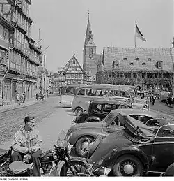Nach dem Krieg war Quedlinburg Teil des neugegründeten Landes Sachsen-Anhalt, seit 1952 des Bezirkes Halle. Während der DDR-Zeit wurde die Firma „Steinle und Hartung“ zu einem großen Betrieb für Mess- und Klimaregelungstechnik (MERTIK) ausgebaut. Die Demonstrationen vom 17. Juni 1953 konnten auch in Quedlinburg und Thale nur durch den Einsatz von Streitkräften der Sowjetarmee unterbunden werden.[15]