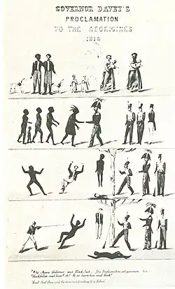 Am 29. November 1826, bereits zwei Jahre bevor Gouverneur George Arthur das Standrecht verhängte, veröffentlichte er folgende Forderung: „Sollte man bemerken, dass ein oder mehrere Stämme entschlossen sind anzugreifen, zu rauben oder die weißen Bewohner zu ermorden, so darf sich jede Person bewaffnen und dem Militär anschließen, um sie mit Gewalt zu vertreiben. Die Stämme können in diesem Fall als offene Feinde betrachtet werden“. Da sich die genauen Umstände der gewalttätigen Ausschreitungen in der Regel der Öffentlichkeit entzogen, hatten die Gewalttäter freie Hand.