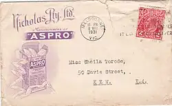 Zwischen dem Ersten Weltkrieg und dem Zweiten Weltkrieg traten viele neue Aspirin-Marken und ASS-basierte Produkte auf den Markt. Das australische Unternehmen Nicholas Proprietary Limited baute durch die aggressive Marketingstrategie von George Davies eine globale Marke mit besonderer Stärke in Australien, Neuseeland und Großbritannien auf.[2]: 153–161 So entstanden amerikanische Marken wie Burtons Aspirin, Molloys Aspirin, Cal-Aspirin und St. Joseph Aspirin, die mit dem amerikanischen Bayer konkurrierten, während neue Produkte wie Cafaspirin (Aspirin mit Coffein) und Alka-Seltzer (eine lösliche Mischung aus Aspirin, Natriumbikarbonat und Zitronensäure) ASS für neue Indikationen einsetzen.[2]: 161–162 1925 wurde die Deutsche Bayer ein Teil der IG Farben, eines Konglomerats ehemaliger Farbstoff-Firmen. Die Aspirin-Marken von IG Farben, in Lateinamerika das coffeinhaltige Cafiaspirina und die von Sterling betreuten Produkte konkurrierten mit weniger teuren ASS-Produkten wie zum Beispiel Geniol.[5]:78, 90