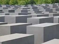 Insgesamt wurden damals zwei Drittel aller europäischen Juden ermordet.[33] Dieses Menschheitsverbrechen gründete auf dem staatlich propagierten Antisemitismus und der entsprechenden rassistischen Gesetzgebung des NS-Regimes. Die Nazis haben während des Dritten Reichs etwa 42.500 Lager errichtet. Im Einzelnen wurden 980 Konzentrationslager gezählt, darunter Vernichtungslager, wie Auschwitz-Birkenau, Treblinka oder Majdanek, 30.000 Arbeitslager einschließlich ihrer oft zahlreichen Außenstellen, 1150 jüdische Ghettos, darunter das größte Ghetto in Warschau mit 450.000 Juden, 1000 Kriegsgefangenenlager und nicht weniger als 500 Zwangsbordelle und Wehrmachtsbordelle. Allein für Berlin wurde eine Zahl von 3000 Zwangsarbeitslagern und sogenannten „Judenhäusern“ ermittelt.[34]