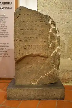 Die antike jüdische Gemeinschaft Sloweniens bestand bereits vor der slawischen Besiedlung der Ostalpen im 6. Jahrhundert n. Chr., als die slawischen Vorfahren der heutigen Slowenen in dem Gebiet siedelten. Die ersten Juden kamen in der Römerzeit in die Region.[1] Archäologische Funde von Juden wurden in Maribor und im Dorf Škocjan im Unterkrain ausgegraben. In Škocjan wurde auf einem Friedhof eine eingravierte Menora gefunden, die aus dem 5. Jahrhundert n. Chr. stammt.[3]