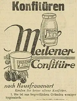 Mit Nachahmerprodukten begann die Migros etablierten Markenartikeln Konkurrenz zu machen. Markennamen und Verpackungen lehnten sich eng an die Originale an oder parodierten diese.[14] Mit sorgfältig vorbereiteten Provokationen dieser Art, aber auch mit polemischen Zeitungsartikeln beabsichtigte Duttweiler, die Konkurrenten zu Klagen herauszufordern – meist mit Erfolg. Die öffentlichkeitswirksamen Zivil- und Strafprozesse, bei denen es in der Regel um Namensschutz, Markenschutz und unlauteren Wettbewerb ging, verhalfen dem Unternehmen schweizweit zu grosser Publizität und viel Gratiswerbung. Allenfalls verhängte Geldbussen waren verhältnismässig gering, besonders wenn man sie dem daraus erzielten Werbeeffekt gegenüberstellte.[15] Auch fremde Unternehmen versuchten, vom zunehmenden Erfolg der Migros zu profitieren. 1929 nannte sich ein Schuhgeschäft in Zürich Migros-Schuhhaus AG. Bis 1933 traten zehn weitere Nachahmer in Erscheinung, darunter Textil-Migros-Gesellschaft, Möbel-Migros oder Strumpf-Migros. Duttweiler liess am 4. November 1931 beim Amt für Geistiges Eigentum das Wort Migros als Marke schützen. Daraufhin zogen drei Unternehmen, die sich ebenfalls Migros nannten, den Fall bis vor das Bundesgericht. Dieses entschied am 7. März 1933 zugunsten des Originals.[16][17]