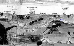 Beweise für eine frühe Besiedlung des Berges mit der heutigen Oberstadt lieferten die Notausgrabungen 1973 und die des Bayerischen Landesamtes für Denkmalpflege 1975 beim Rathaus. Verfärbungen im Boden zeigten, dass es dort bereits um 830 n. Chr. eine weitläufige Burganlage von großer militärischer Bedeutung gab. Die Burg war mit einer Holz-Erde-Mauer und einem Abschnittsgraben befestigt[2] und hatte eine Fläche von rund 5000 m². Neben der Größe weist auch die Bauweise auf die große Bedeutung der Burg hin, die mit drei Mauertürmen, einer Toranlage und teilweise einem Doppelgraben außergewöhnlich gut befestigt war.