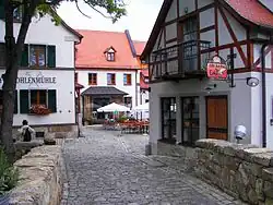 - ↑ Im 17. Jahrhundert befanden sich „die Bäder“ in der Kirch-Gasse nahe der Stadtkirche. Vgl. Max Döllner (1950), Faltblatt zwischen S. II und III.