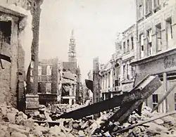 Die ersten Luftangriffe 1940 und 1942 durch die im Bündnis mit der Sowjetunion kämpfenden Westmächte hinterließen keine größeren Schäden in der Stadt.[15] 1943 und besonders im Januar und August 1944 war Stettin mehrfach Ziel schwerer Bombenangriffe der britischen Royal Air Force, in deren Folge Industrie-, Hafen- und Verkehrsanlagen stark beschädigt und die Altstadt zu über 90 Prozent zerstört[20] wurde. Die Zerstörungsrate der Hafenanlagen lag bei 70–80 Prozent; 60–70 Prozent der Stadtbebauung war zerstört. Damit zählte Stettin zu den 20 am meisten zerstörten Städten des damaligen Deutschlands.[21] Bei den Angriffen am 17. und besonders am 30. August 1944, der auch die nördlichen Vorstädte Grabow und Bredow traf, verloren mindestens 3200 Menschen ihr Leben; 40.000 Menschen wurden evakuiert.[15]