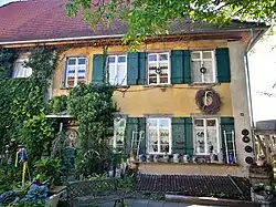 Das zweistöckige Fachwerkhaus wurde um 1700 im Linzgau-Stil erbaut und ist mit zahlreichen Zierformen wie Rauten, Andreaskreuzen und V-Streben ausgestattet.