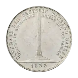 | 1833 | „Denkmal der Dreyssig Tausend Bayern welche im Russischen Kriege den Tod fanden“ – Obelisk in München. Im Abschnitt 1833 |