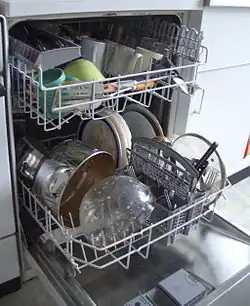 Eine Geschirrspülmaschine (schweiz. auch Abwaschmaschine, als Kurzform auch Spülmaschine[1] oder ugs. Geschirrspüler[2] genannt) ist ein meist in Küchen eingesetztes Gerät zur maschinellen Reinigung von Koch- und Essgeschirr, Essbesteck und Küchenutensilien.