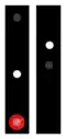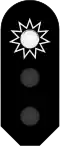 Erlaubnissignal Ein lotrechter weiß leuchtender Balken auf schwarzem Grund der gegebenenfalls durch einen oder zwei weiß leuchtende Punkte ergänzt wird.