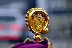 Hohe Fraumünsterfrau Regula Zweifel, Fürstäbtissinnenstab rechts im Bild