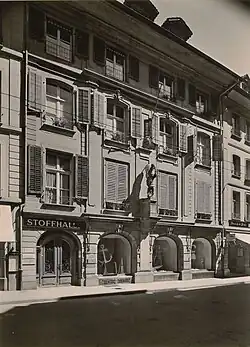 Werkmeister Baumgartner wurde in den Jahren 1732 bis 1737 für Umbauarbeiten bezahlt.[15] Aus dem Jahr 1732 hat sich das durch Johann Friedrich Funk geschaffene Hauszeichen an der Marktgasse 11 erhalten.[16] Im Jahr 1765/66 erhielt das Haus an der Amthausgasse die heute noch teilweise erhaltene Fassade, welche aufgrund entsprechender Zahlungen in der Seckelmeisterrechnung an den Architekten Niklaus Sprüngli ihm zugeschrieben wird.[17] 1777 logierte Kaiser Joseph II. im Goldenen Falken.[18]