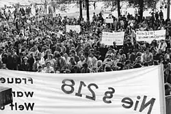 Die Neufassung der Rechtsgrundlagen zum Schwangerschaftsabbruch in der DDR setzte in der Bundesrepublik zudem die sozialliberale Koalition unter Bundeskanzler Willy Brandt und Justizminister Gerhard Jahn in ihren Bestrebungen zu einer Reform des § 218 StGB unter Druck. Dadurch kam es im Juni 1974 zur Verabschiedung einer mit der neuen Rechtslage in der DDR vergleichbaren Fristenlösung anstelle der ursprünglich geplanten begrenzten Indikationsregelung.[37][38] Die Neuregelung wurde allerdings nach einer Verfassungsklage der Mitglieder der CDU/CSU-Bundestagsfraktion sowie von fünf Landesregierungen im Februar des folgenden Jahres vom Bundesverfassungsgericht für verfassungswidrig erklärt[39] und im Juni 1976 durch ein Modell mit vier verschiedenen Indikationen ersetzt, bei der zusätzlich zu den bereits vorher zulässigen Ausnahmen die soziale Indikation neu aufgenommen wurde.[37][40] Nach der deutschen Wiedervereinigung entstand mit dem Gesetz über Aufklärung, Verhütung, Familienplanung und Beratung vom 27. Juli 1992[41] eine Fristenregelung mit Beratungspflicht und Indikationen als bundeseinheitliche Neuregelung der gesetzlichen Bestimmungen zum Schwangerschaftsabbruch, die einen Kompromiss aus der Fristenlösung der DDR und dem Indikationsmodell in der Bundesrepublik darstellte. Diese Novellierung trat nach einer Beanstandung durch das Bundesverfassungsgericht[42] 1993 in geänderter Form in Kraft, schließlich erfolgte 1995 eine Neuregelung durch den Gesetzgeber.[43]