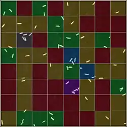 - 1 Quadrat enthält vier Reiskörner (violett).