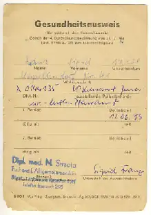 Ein Gesundheitspass (auch „Rote Karte“ genannt), der bestimmte gesundheitliche Untersuchungen und eine entsprechende Unbedenklichkeit bescheinigt (Gesundheitszeugnis), ist seit Inkrafttreten des Infektionsschutzgesetzes 2001 nicht mehr regelmäßig notwendig. Bei Anhalt für ein Tätigkeitsverbot ist vor dem Ausstellen der Bescheinigung aber weiterhin ein ärztliches Zeugnis vorzulegen, dass dieser Hinderungsgrund nicht besteht oder beseitigt ist[1].