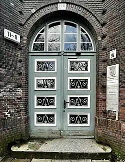 Auf der Rückseite des Gebäudes schmückt eine weitere Figur die Fassade. Über dem Hofeingang befindet sich als Eckfigur ein Putto auf einem Füllhorn, vermutlich ein Hinweis auf die armenpflegerischen Aufgaben des Gesundheitshauses.[5]
