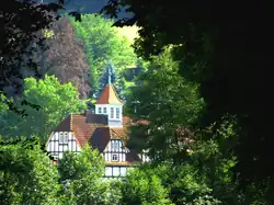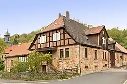 - ↑ Die Scheune Eichelkopfstraße 15, Flur 1, Flurstück 16/3 im westlichen Ortsteil des Dorfes (Unterdorf) wird in der Denkmaltopographie (Landesamt für Denkmalpflege Hessen (Hrsg.): Denkmaltopographie Bundesrepublik Deutschland – Kulturdenkmäler in Hessen – Main-Kinzig-Kreis II (Altkreis Gelnhausen), Band II.2, Konrad Theiss Verlag, Stuttgart 2010, S. 703, ISBN 3-8062-2469-2) fälschlich der ehemaligen Papiermühle (im Oberdorf) zugeordnet.