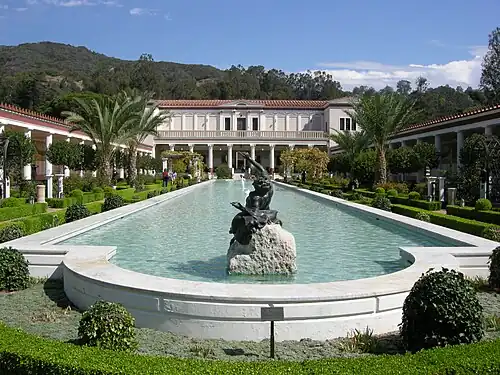 Die Getty Villa in Pacific Palisades ist einer der beiden Standorte des J. Paul Getty Museums. Das der Villa dei Papiri in Herculaneum nachempfundene Gebäude beherbergt heute die Antikensammlung des Museums.