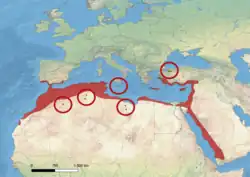 Das Gewöhnliche oder Europäische Chamäleon (Chamaeleo chamaeleon) lebt in Nordafrika entlang der Küste des Mittelmeers, in Israel, Jordanien, Syrien, dem Libanon und der südlichen und westlichen Türkei. In Europa gibt es nur wenige, isolierte Vorkommen. Es lebt im Süden der Iberischen Halbinsel in der portugiesischen Provinz Faro und in den spanischen Provinzen Huelva, Cádiz, Málaga, Granada und Almería, auf Malta, Kreta, Chios, Samos, Zypern und in den italienischen Regionen Apulien und Kalabrien.[1] Die Chamäleons im Süden der Peloponnes sind keine Europäischen, sondern die größeren Afrikanischen Chamäleons (Chamaeleo africanus). Die europäischen Vorkommen beruhen vermutlich auf Einschleppungen durch den Menschen.