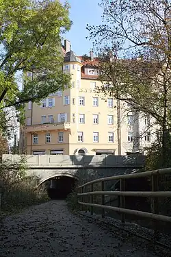 Unter einem Bogen führt ein Fuß- und Radweg durch, unter dem anderen fließt der Westermühlbach. Der Pesenbach ist mittlerweile trockengelegt. Die beiden Bögen führen jedoch nicht nur unter der Straße hindurch, sondern auch unter dem Haus auf der Nordseite der Straße.