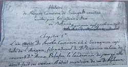 Die ersten Zeilen von Casanovas Manuskript seiner Histoire. Die Handschrift wurde 1943 in Leipzig auf einem Fahrrad vor dem Bombenangriff in Sicherheit gebracht und in einer noch bestehenden Bank deponiert. Winston Churchill ließ es von der Armee nach Wiesbaden bringen. In der Edition von 2010 tauchten auch diejenigen Passagen auf, die Casanova durchgestrichen hatte (Damrosch).