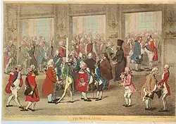 Durch die Protektion dieses Senators, dessen Tischgenosse Casanova im Palazzo Malipiero am Campo San Samuele wurde, und die Freundschaft des adligen Dichters Giorgio Baffo (1694–1768)[20] erhielt er Zugang zur Nobilität der Stadt, bei der er auf sich aufmerksam machte. Andererseits war ihm klar, dass diese Führungsgruppe praktisch abgeriegelt war, denn er gehörte keiner der adligen Familien der Stadt an – ein schmerzhaftes Bewusstsein der Ungerechtigkeit, das er jedoch stets verbarg (Histoire de ma vie 2, 4). So schrieb er über einen Aufsteiger, der den Namen Tognolo gegen Fabris tauschte: ‚Wenn er seinen Namen Tognolo beibehalten hätte, so würde ihm dieser Name Schaden bereitet haben, denn er hätte ihn niemals aussprechen können, ohne sich an das zu erinnern, was man nach dem verächtlichen Vorurteil eine niedrige Herkunft nennt. Die bevorrechtigte Klasse will in strafbarem Irrtum nicht glauben, dass in einem Bauern Größe und Genie sein können. Die Zeit wird zweifellos kommen, wo die Gesellschaft aufgeklärter und vernünftiger sein und erkennen wird, dass in allen Ständen edle Gefühle, Ehre und Heldentum sich ebenso leicht finden können ….‘