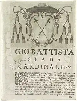 Er entstammt einer Adelsfamilie aus Lucca und war ein Neffe von Kardinal Bernardino Spada.