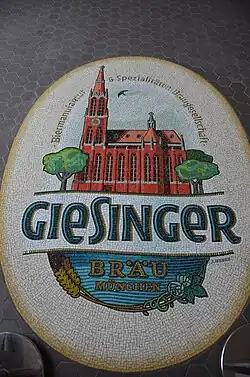 Mit dem „Giesinger Bräu“ verfügt der Stadtteil über eine eigene Brauerei.[8] Sie gilt seit 2021 offiziell als die „7. Münchner Brauerei“.[9] Bei dieser Zählung geht man von den traditionsreichen sechs Münchner Biermarken aus, die aber inzwischen teilweise nicht mehr als eigenständige Brauereien existieren: Augustiner-Bräu, Hacker-Pschorr, Hofbräu, Löwenbräu, Paulaner und Spatenbräu. Das Emblem von Giesinger Bräu schmückt die Heilig-Kreuz-Kirche (Bild).