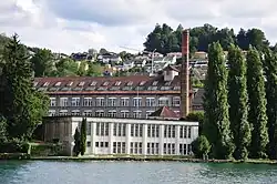 Die Giessenmühle aus dem 16. Jahrhundert zählt heute zu den ältesten Gebäuden Wädenswils. Die ehemalige Tuchfabrik Pfenninger mit ihrem Hochkamin sowie die ehemaligen Bierlagerstollen der Brauerei Wädenswil sind wichtige Zeugnisse der Industriearchitektur des 19. und frühen 20. Jahrhunderts. Die Textilfabrik Pfenninger wurde 1905 von Robert Maillart entworfen und gilt wegen der grossen Hallen, die dank neuer Statik möglich wurden, als wegweisender Industriebau. Die vom See aus gut sichtbare neoklassizistische Villa von Albert Kölla gilt als Wahrzeichen der Halbinsel. Die Giessbach Ranch ist der einzige rund um die Uhr geöffnete Gastronomiebetrieb in Wädenswil.[3]