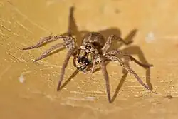 Zoropsis spinimana, sensationslüstern als „Nosferatu-Spinne“ bezeichnet, ist eine Art aus der Familie der Kräuseljagdspinnen (Zoropsidae). Ihr großes Verbreitungsgebiet umfasst unter anderem auch den europäischen Mittelmeerraum. Seit einigen Jahren beginnt die Art, ihr Areal nach Mitteleuropa auszudehnen, vermutlich verschleppt durch menschliche Transporte, so tritt sie seit 1998 neu in Österreich, seit 2003 in der Schweiz, seit 2006 in Deutschland auf.[25] Die Art breitete sich weiter aus und ist inzwischen in ganz Deutschland zu erwarten. 2008 erreichte sie Großbritannien.[26] In den nördlichen Teilen dieses neuen Verbreitungsgebiets ist die Art rein synanthrop und tritt nahezu ausschließlich innerhalb von Häusern auf, wo sie ganzjährig, auch im Winter, zu erwarten ist. Zoropsis spinimana erreicht als Weibchen 15, als Männchen 10 Millimeter Körperlänge und erinnert im Habitus an eine Wolfsspinne. Sie ist braun gefärbt, der Vorderkörper mit zwei dunklen Längsstreifen, auf dem Hinterleib ein dunkler Längsfleck mit einigen Winkelflecken dahinter. Sie ist nachtaktiv und ruht tagsüber in einem selbst gesponnenen Schlupfwinkel. Sie baut keine Fangnetze.