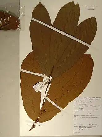 Blätter von Gilbertiodendron dewevrei in einem Herbarium | ||||||||||||