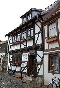 Das zweigeschossige Fachwerkhaus entstand nach einer Inschrift im Jahr 1690. Die Stockschwelle ist mit Schiffskehlen verziert. In den Eckbereichen des Fachwerks findet sich die Fachwerkfigur des Halben Manns.