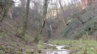 ![]() Gillenbachtal und Wasserfall kurz vor der Mündung in den Sirzenicher Bach | ||