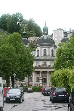 Max Gandolf von Kuenburg berief Gaspare Zuccalli ein Jahr später nach Salzburg und verhandelte mit ihm den Bau einer Kirche am Kai, der späteren Kajetanerkirche, und mit dem Salzburger Domkapitel den Bau der Erhardkirche des St.-Erhard-Spitals im Nonntal.