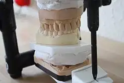 In der Zahnheilkunde werden zum einen Gipsmodelle des Gebisses angefertigt, um damit die Ausgangssituation vor einer Behandlung festzuhalten, die Situationsmodelle genannt werden. Zum anderen werden auf Gipsmodellen Zahnersatz, Aufbissschienen, kieferorthopädische Apparaturen oder Mundschutze angefertigt. Vor der Anfertigung des Gipsmodells wird eine Abformung des Gebisses oder der Kiefer mit Hilfe eines konfektionierten oder individuell angefertigten Abdrucklöffels genommen.[1] Von der Präzision der Abformung und des Modells hängt die Präzision des herzustellenden zahntechnischen Werkstücks ab.