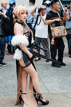 - Eine T-Doll und wandernde Guzheng-Musikerin, früher bekannt als Type 95 in Girls' Frontline, und die Protagonistin des Zeitlimit-Events Unter den Flügeln der Verzweiflung.[80] Während sie zusammen mit den T-Dolls Jiangyu und Zhaohui reist, wird Daiyan Zeugin einer Reihe von Explosionen durch eine ELID-Invasion, die die Quarantäne-Mauer an einem interkontinentalen Bahnhof durchbricht, und entdeckt eine beschädigte Doll, die bewusstlos auf dem Boden liegt.[81] Beim Neustarten ihres Rahmens stellt sich die Doll als Colphne heraus, die erklärt, dass sie nach einem ELID-Angriff vom Kommandanten und Helena getrennt wurde. Daiyan erkennt, dass Colphnes Kommandant derselbe ist, der sie ursprünglich bei der PMC Griffin & Kryuger führte, und beschließt, Colphne dabei zu helfen, sie zu finden.[34] Da Helena einen Peilsender hat, kann Colphne ihren Standort auf eine nahegelegene unterirdische Einrichtung festlegen. Nachdem sie PMC-Truppen umgangen haben, die das Gebiet patrouillieren, und die Einrichtung erreicht haben, entdecken sie eine groteske Szene von aus Fleisch bestehender Vegetation in den Fluren und Glastanks für menschliche Experimente mit Paradeus-Gravuren.[60] Als sie eine riesige Grube erreichen, treffen sie auf Paradeus-Kultisten, die sich kollektiv umbringen und ihre Körper einem riesigen ELID unter ihnen zuführen.[60] Nach der Zerstörung des ELIDs und dem Herausziehen von Helena aus dessen Körper tritt eine weitere Helena-Klon hervor und enthüllt, dass die zahlreichen Klone ursprünglich als Ritualobjekte von Paradeus dienten.[82] Gerade als eine Helena die andere töten will, stürmt der Kommandant herein und packt Helena, während Dandelion das Verteidigungssystem der anderen Helena deaktiviert.[82] Nach der kurzen Wiedervereinigung zwischen dem Kommandanten und den ehemaligen Griffin-Dollen aus Daiyans Gruppe erhält der Kommandant eine Nachricht von Makiatto und Centaureissi, die auf das Notrufsignal reagiert haben, das Dandelion nach dem Drohnenabsturz ausgesendet hat, und sich ebenfalls auf dem Weg zur Einrichtung befinden.[82]