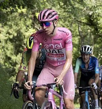 | Gesamtsieger Pogačar im Rosa Trikot während der 20. Etappe | |||