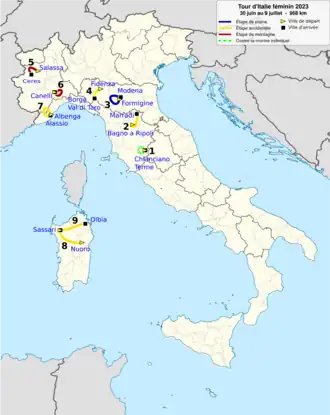 - ↑ Organisers reveal limited route details for 2023 Giro d'Italia Donne. CyclingNews, 26. Mai 2023; abgerufen im 1. Januar 1 (englisch).
