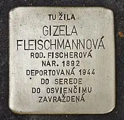 - ↑ Yad Vashem: The Fischer Family, Bratislava, Czechoslovakia. In: Stay Together, The Fate of Jewish Families in 1944, abgerufen am 7. Mai 2016.